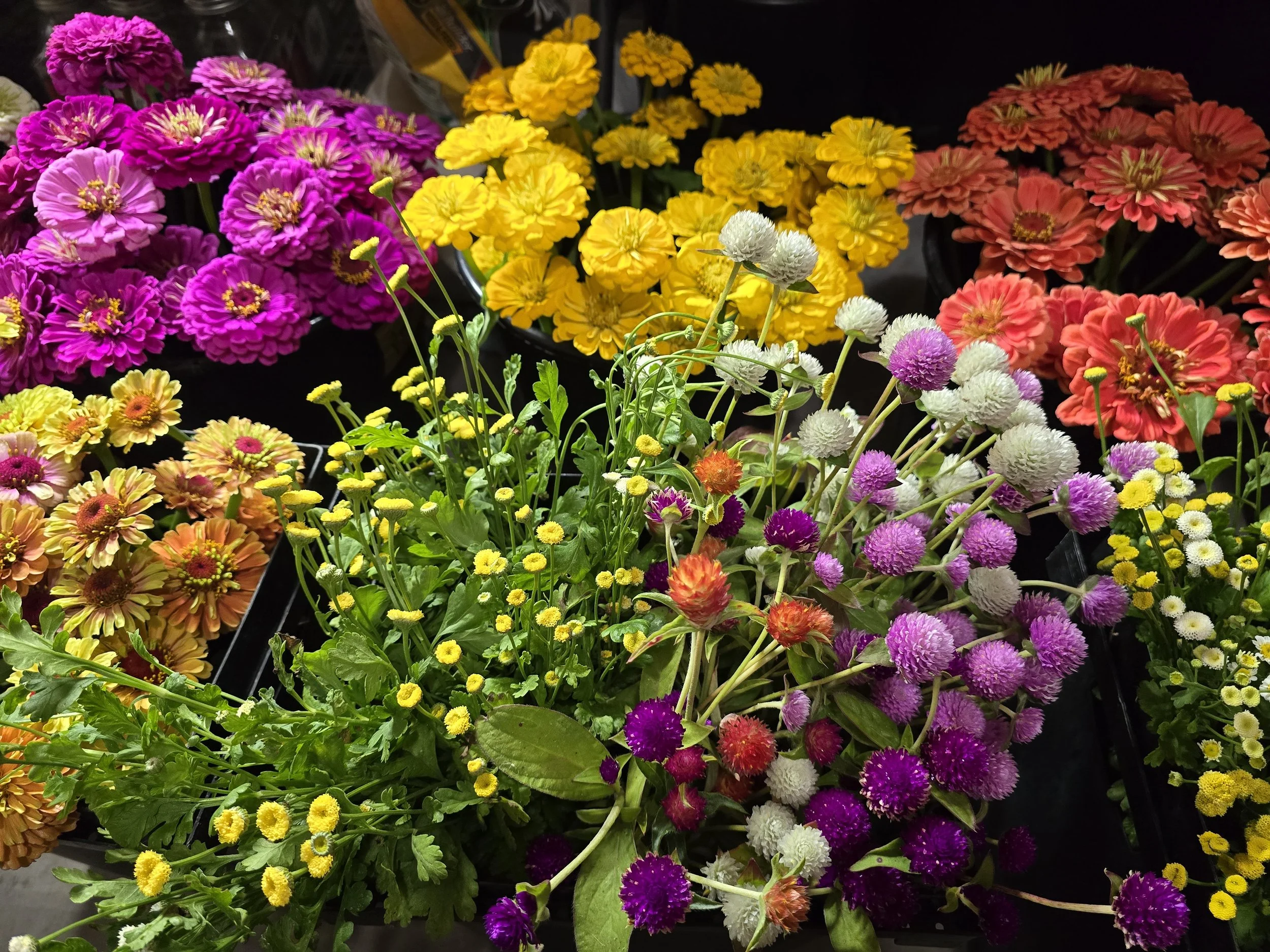 We are a local cut flower farm with over 50 varieties of cut flowers available early spring thru Fall.